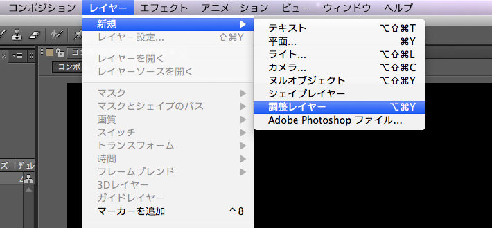 [レイヤー]メニューの中の[新規]→[調整レイヤー]を選択します。