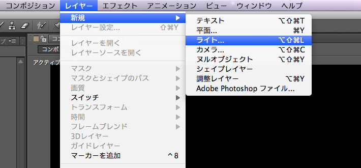 [レイヤー]メニューの中の[新規]→[ライト...]を選択します。