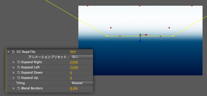 横幅が切れているので補足するために、「CC RepeTile」エフェクトを適用し両端が埋まるように値を調整します。