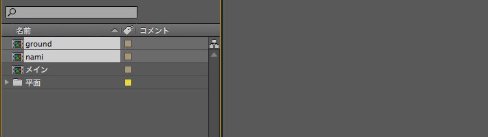 次に地面を作っていきます。プロジェクトパネルで「nami」のコンポジションを複製し「ground」と名前を付けます。