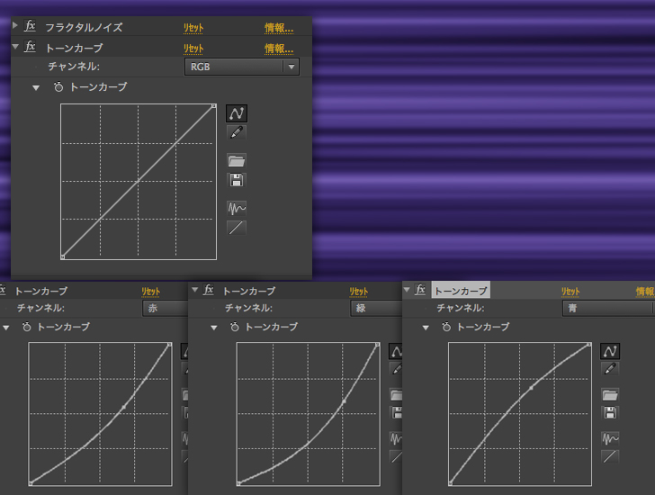 次にエフェクトの「トーンカーブ」を適用し、好みの色に変更します。