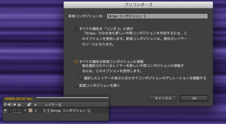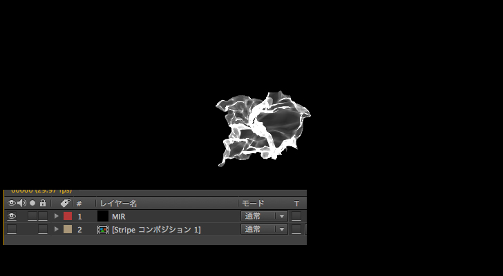 さきほどプリコンポーズしたレイヤーは一旦非表示にし、新規平面レイヤーを作成し、レイヤー名を「MIR」と名づけます。