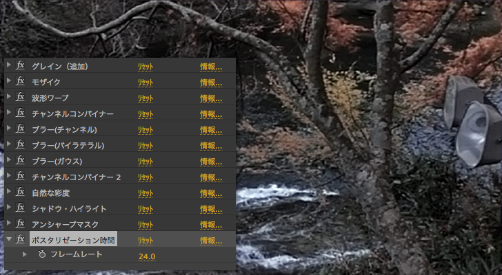 少しフレームレートを落とすためにエフェクトの「ポスタリゼーション時間」を適用し、パラメータを調整します。