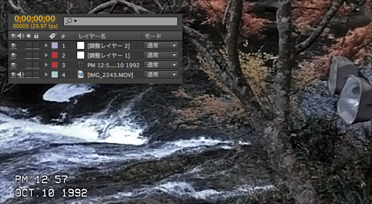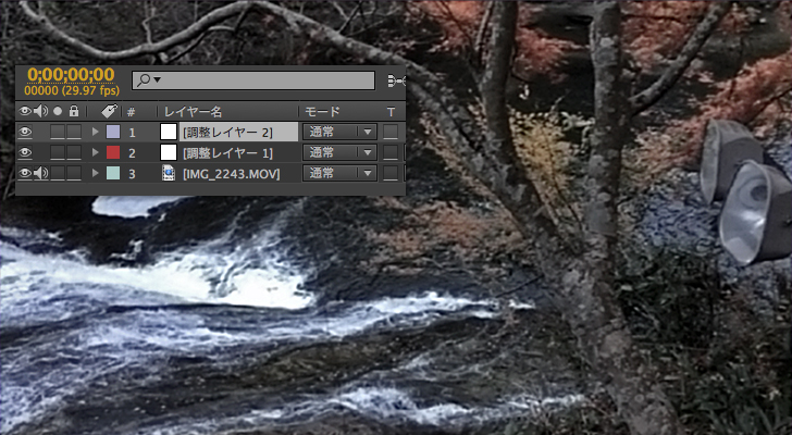 この調整レイヤーにエフェクトを適用していき、映像を調整していきます。