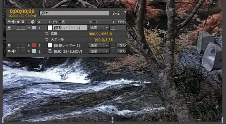 さきほど作成した調整レイヤーの「位置」「スケール」を調整します。