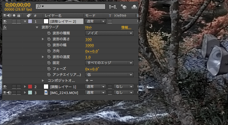 エフェクトの「波形ワープ」を適用し、下部のノイズは完成です。