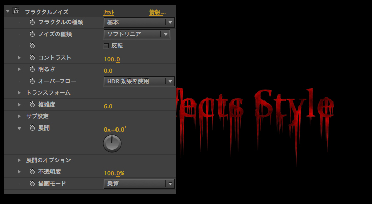 これで完成です。あとはお好みでエフェクトの「フラクタルノイズ」を適用したりすると雰囲気がでます。