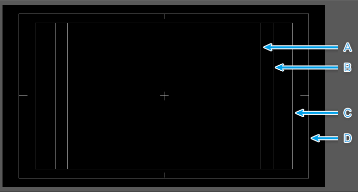 A.センターカットタイトルセーフゾーン ... 4:3ディスプレイに表示させたときにタイトルセーフとなる領域
