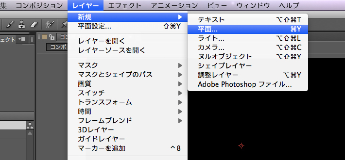 [レイヤー]メニューの中の[新規]→[平面...]を選択します。