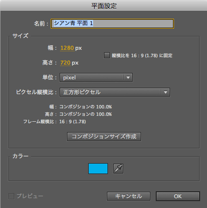 平面設定ダイアログが出てくるので、必要に応じて設定をし、「OK」ボタンを押します。