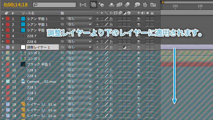 「調整レイヤー」とは、調整レイヤーで設定したエフェクトを、調整レイヤーより下にあるすべてのレイヤーに反映させることができるレイヤーです。