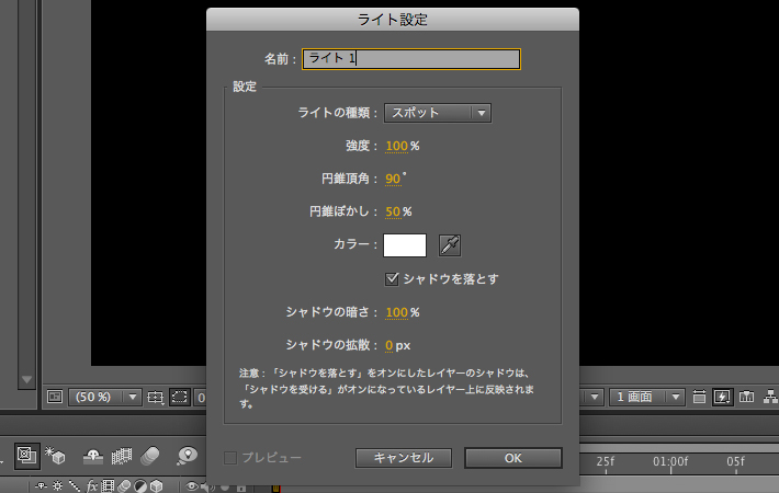 ライト設定ダイアログが出てくるので、必要に応じて設定を行い「OK」ボタンを押します。