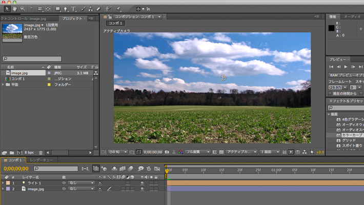 ライト効果を適用したいレイヤーが3Dレイヤーになってない場合はこのような警告ダイアログがでてきます。ライト効果を適用させるには、ライトレイヤーを作成する前か後で3Dレイヤーにしてやる必要があります。