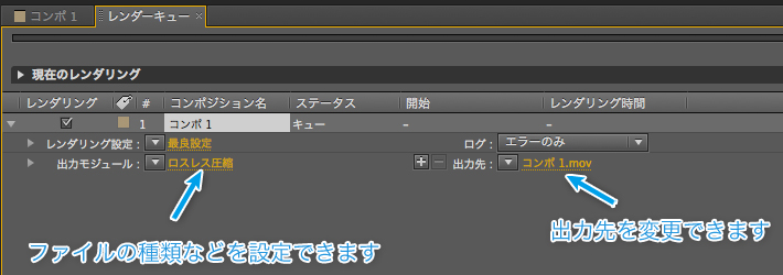 After Effectsのレンダリング作業は長時間かかることが多いので、いくつも書き出しを行わないといけない場合、レンダーキューにまとめて設定して、夜間レンダリングして寝るといったことができます。