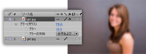 ブラーの適用量をここでは「15」としていますが、素材にあわせて調整してください。