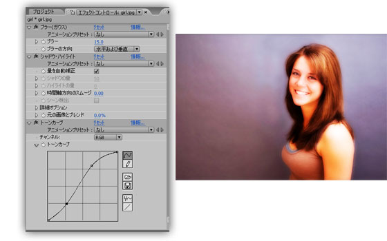 両方のレイヤーに、「エフェクト」→「色調補正」→「シャドウ・ハイライト」を適用します。