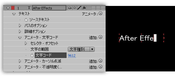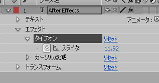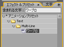 「エフェクト&プリセット」の中から「ワープロ」のプリセットをテキストレイヤーにドラッグし、適用させます。