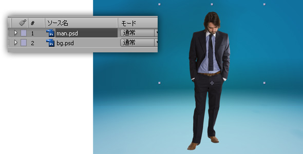 背景を用意し、余分なところを切り取った人物の素材を用意します。
