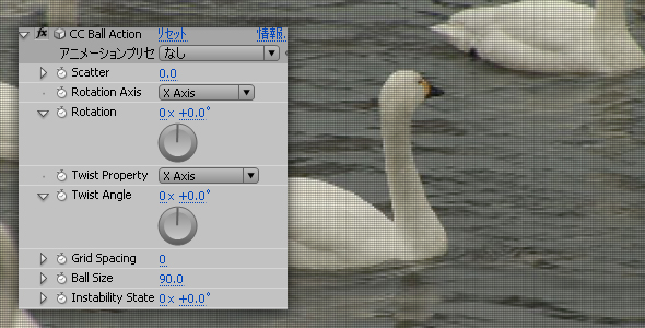 素材に「エフェクト」→「Simulation」→「CC Ball Action」を適用します。