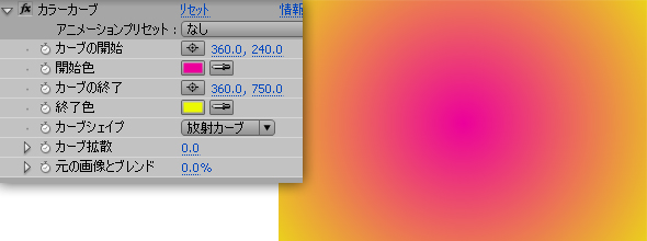 新規平面を作成し、エフェクトの「カラーカーブ」を適用します。