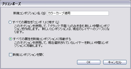 先ほどの「カラーカーブ」を適用したコンポジションをプリコンポーズします。