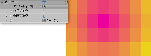 プリコンポーズしたら「エフェクト」→「スタライズ」→「モザイク」を適用します。