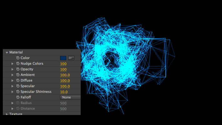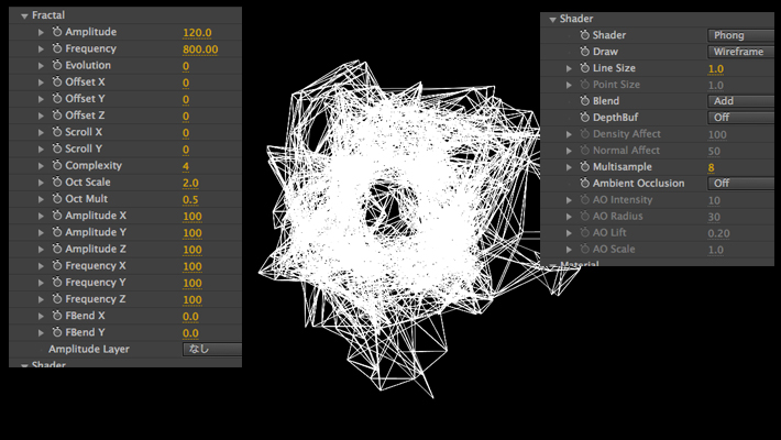 新規平面レイヤーを作り、「Trapcode Mir」エフェクトを適用します。「Geometry」のパラメータを以下のように設定します。