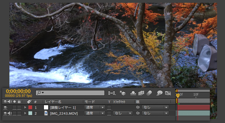 この調整レイヤーにエフェクトを適用していき、映像を調整していきます。