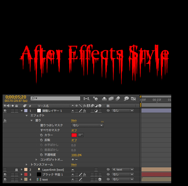 これで完成です。あとはお好みでエフェクトの「フラクタルノイズ」を適用したりすると雰囲気がでます。